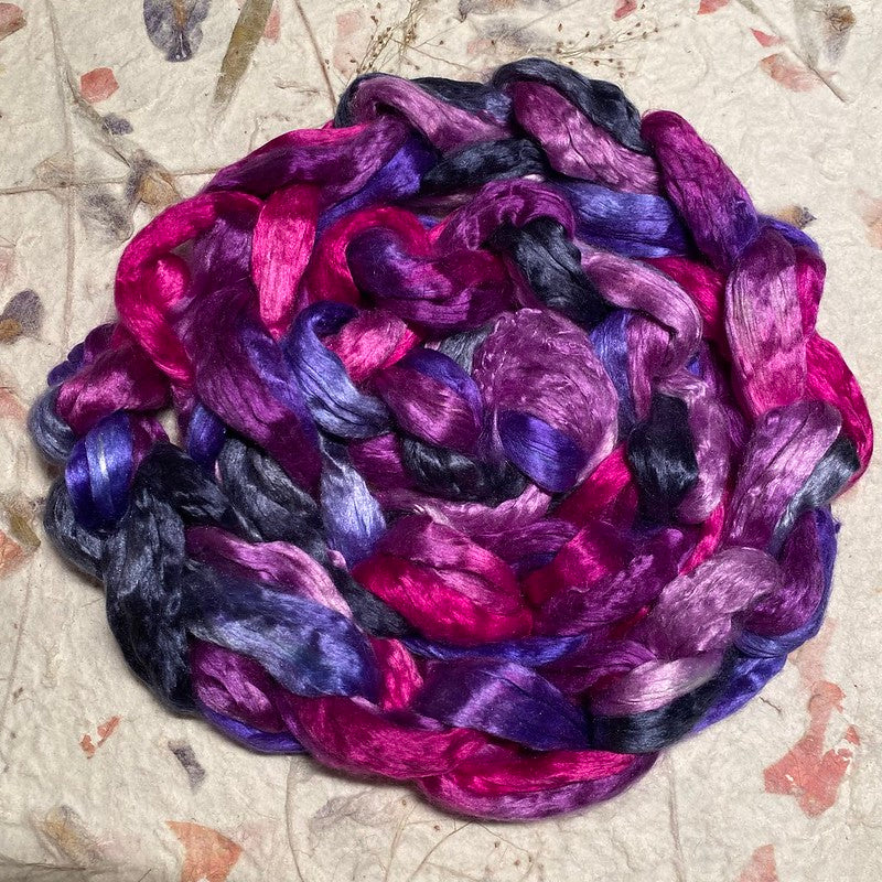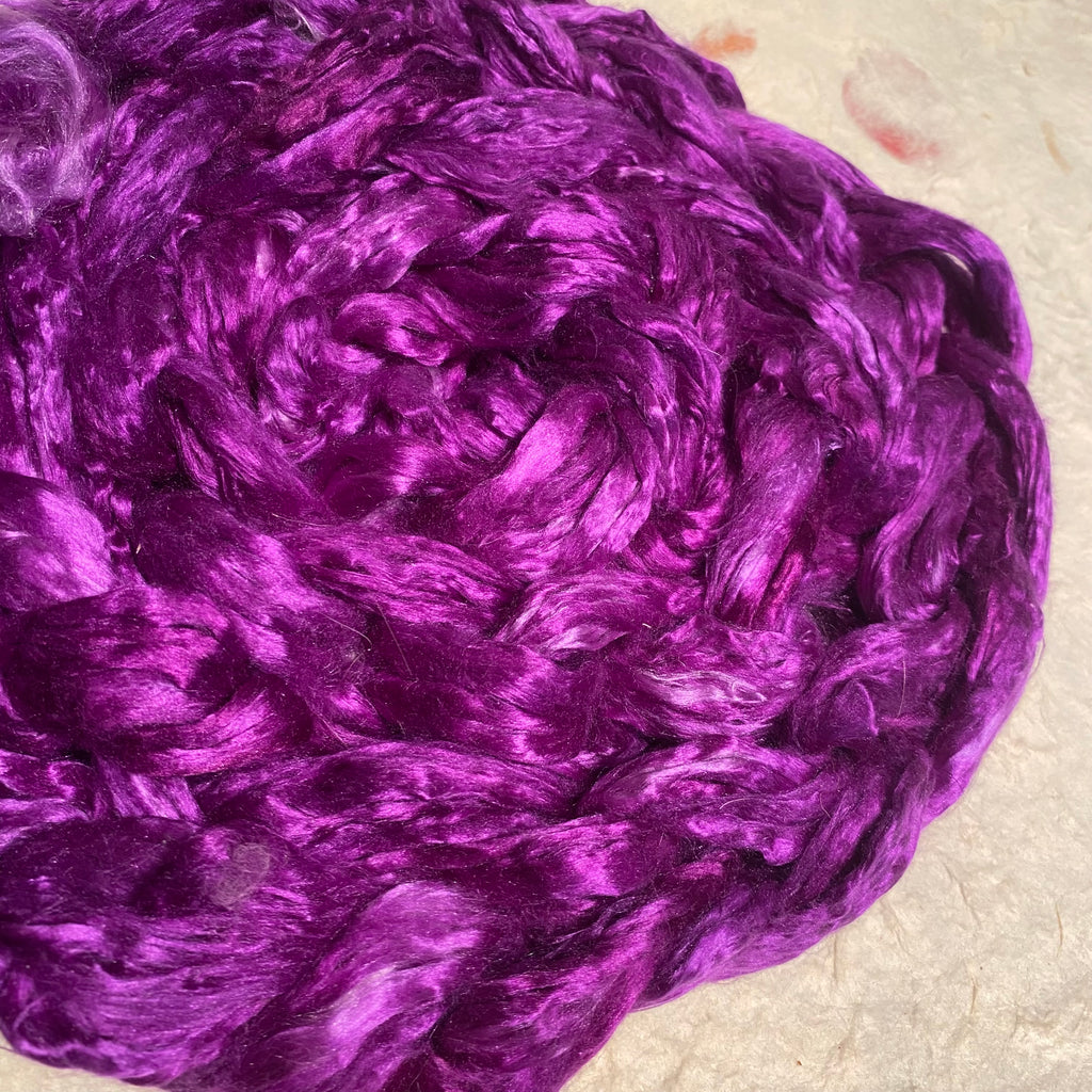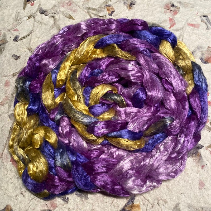 Our silk top is a A-grade quality, combed into a top and ready to spin! This lustrous fibre is ideal for use in spinning or blending with other any fibre or spin on it’s own. Excellent for felting as well.