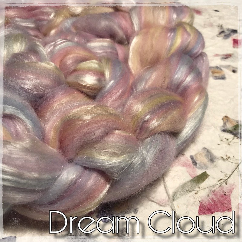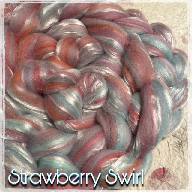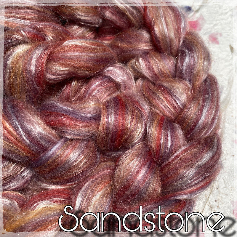 Dyed superfine Merino with Mulberry Silk, blended together after dyeing to create a luscious symphony of colours.